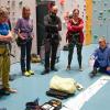 Zu Beginn konnten die Anwärter*innen durch Rollenspiele ihre Wahrnehmung individueller Bedürfnisse beim Klettern weiterentwickeln sowie praktische Hilfsmittel kennenlernen. Im zweiten Teil wurden vor allem die Hilfsmittel vertieft, um den Teilnehmenden ein sicheres Auftreten als Klettertrainer*in inklusiver Kletterkurse zu ermöglichen.